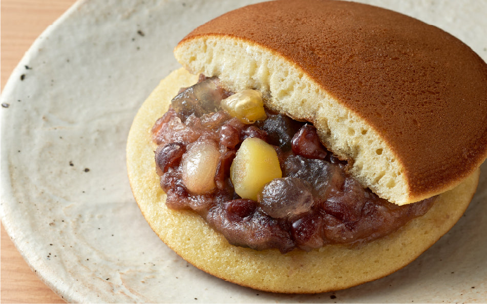 小豆や柑橘寒天をふんだんに使った餡を、ふっくらと柔らかく焼き上げた生地で包んだ、柑橘の香りが爽やかに広がるどらやきです。