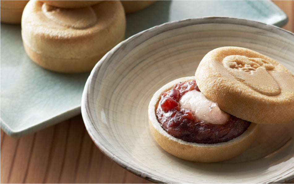 日本一の玉露の産地として知られる福岡県八女の茶葉を使い、深い味わいと抹茶の香り、上品な甘さが調和した餡に仕上げました。