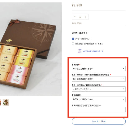 商品ページ内に各選択欄がございます。ご希望に合わせてご選択ください。