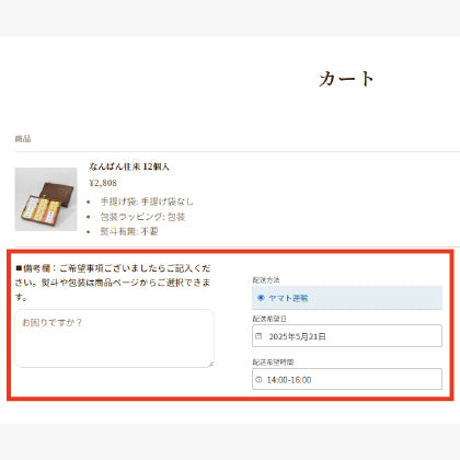「カートに追加ボタン」をタップ後、備考欄にご希望の表書きをご記入ください。